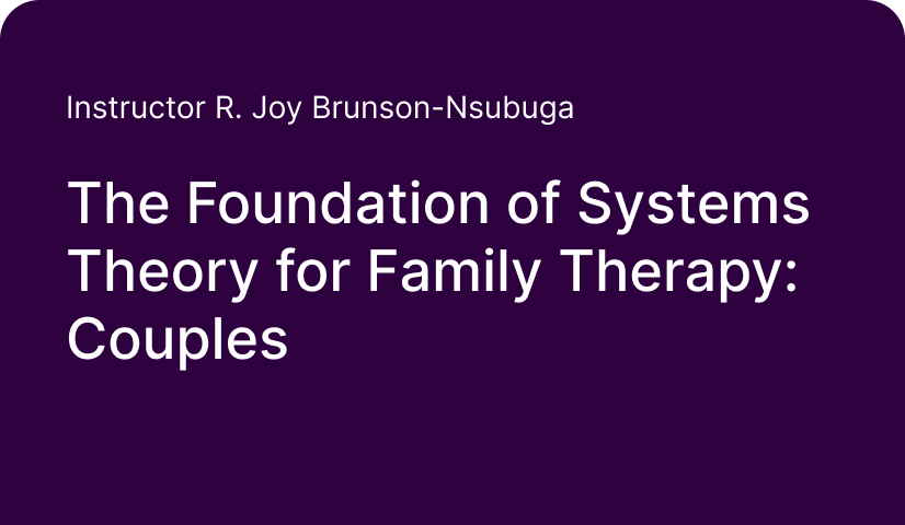 Systems theory and systemic practice is a foundational theoretical orientation for working with clients. Moving the framework from individually focused practice to systemic practice, this webinar presents key schools of thought for working with couples and partners by walking professionals through how to work with these relationships. This webinar also focuses on presenting and defining terms, strategies, and approaches from the systemic lens. And finally, this webinar discusses areas of continued research by utilizing systemic practice with diverse relationships.